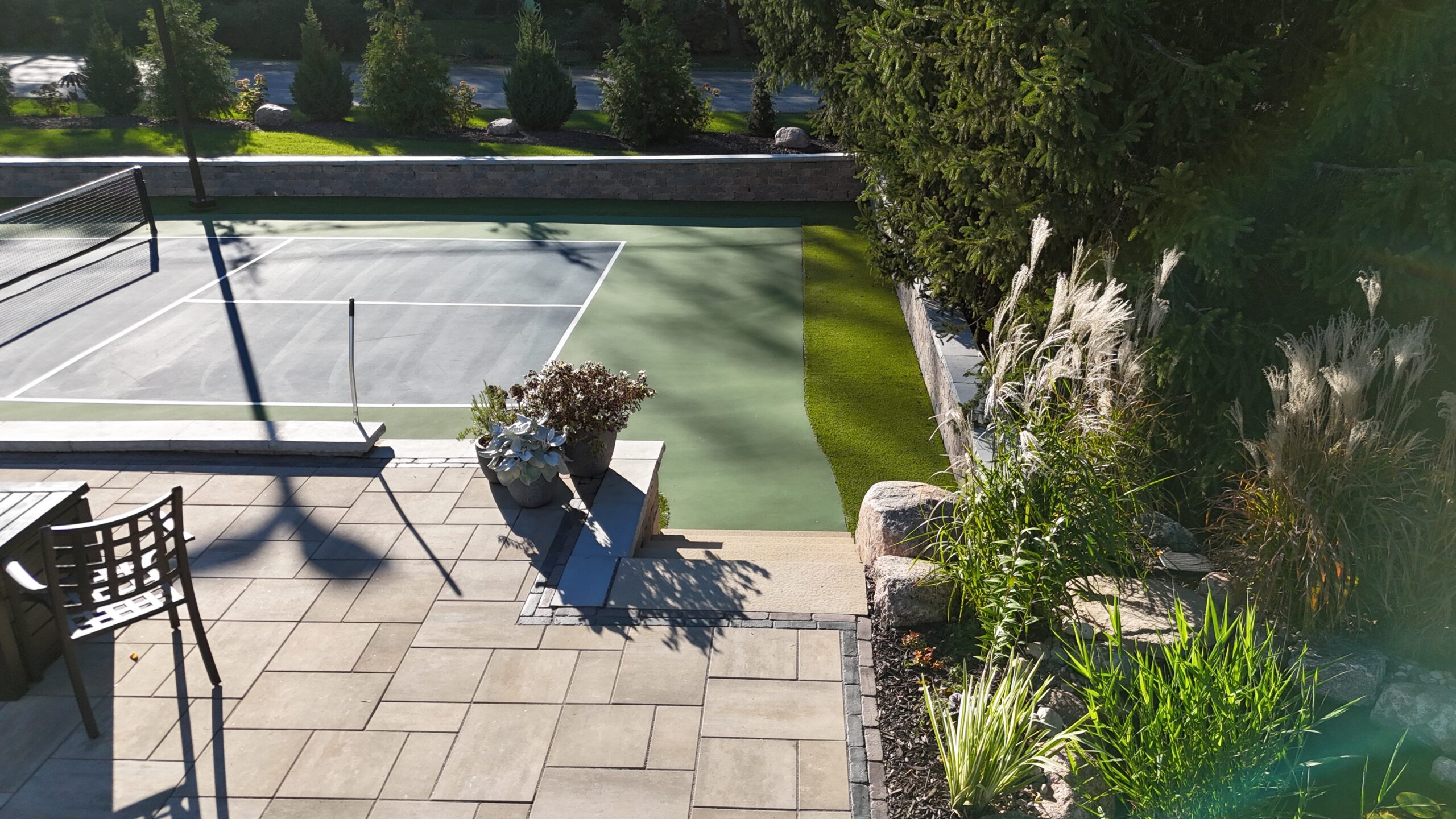 They also built a stunning 30-inch stone wall around the court that fits the space perfectly and keeps balls contained, which means more time playing and less time chasing.