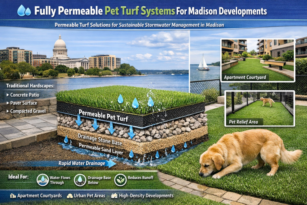 Apartment communities throughout Madison — including Downtown, the Isthmus, UW-Madison campus area, Middleton, Fitchburg, Verona, and Sun Prairie — need pet areas that are durable, clean, and environmentally responsible.