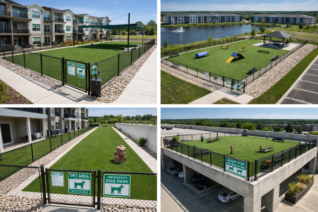 HOA pet turf is a commercial-grade artificial grass system designed for shared dog areas within residential communities.